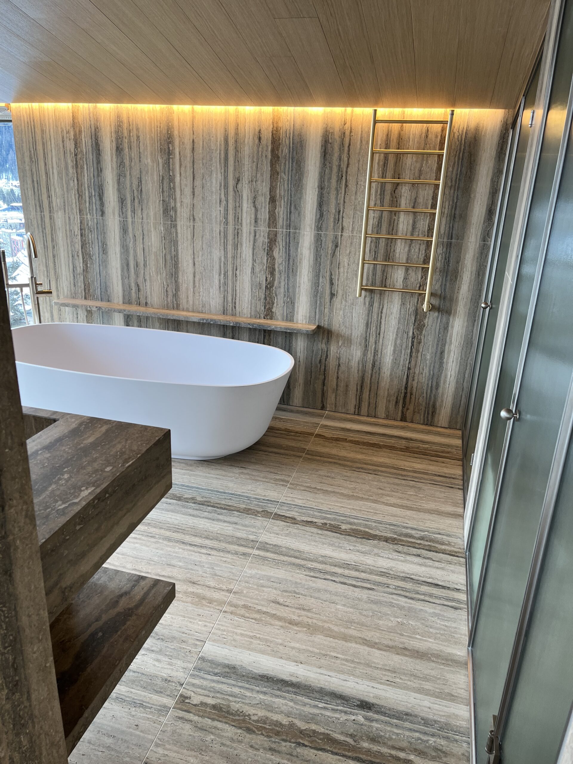 Bäder Natursteine können in Bädern sehr vielseitig eingesetzt werden. Ob als Waschtisch, Fussboden, Wandverkleidung oder Badewanne – Natursteine machen sich im Bad besonders gut. Oder doch lieber grossformatiger Keramik? Gerne beraten wir Sie ausführlich!