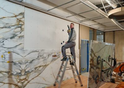 Für Sie als Kunde ist die Montage natürlich die zentrale Dienstleistung. Auch für uns ist sie selbstverständlich jedes Mal aufs Neue etwas ganz Besonderes. Wir sind daher bei allen Montagearbeiten sehr gut vorbereitet und ausgestattet. Beim Montieren Ihrer Natursteine füllen wir all unsere zentralen Unternehmensprinzipien mit Leben: Genauigkeit, Sorgfalt und Kundenorientierung stehen bei uns zu jeder Zeit und bei jedem Handgriff im Mittelpunkt. Krönender Abschluss unserer Montagearbeiten ist die Präsentation und Übergabe der fertigen Natursteinlösung an Sie.